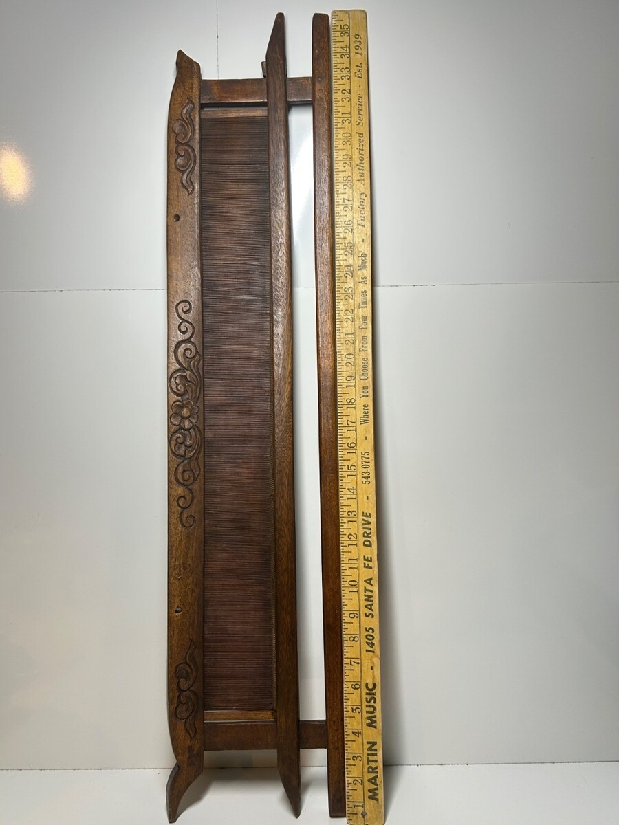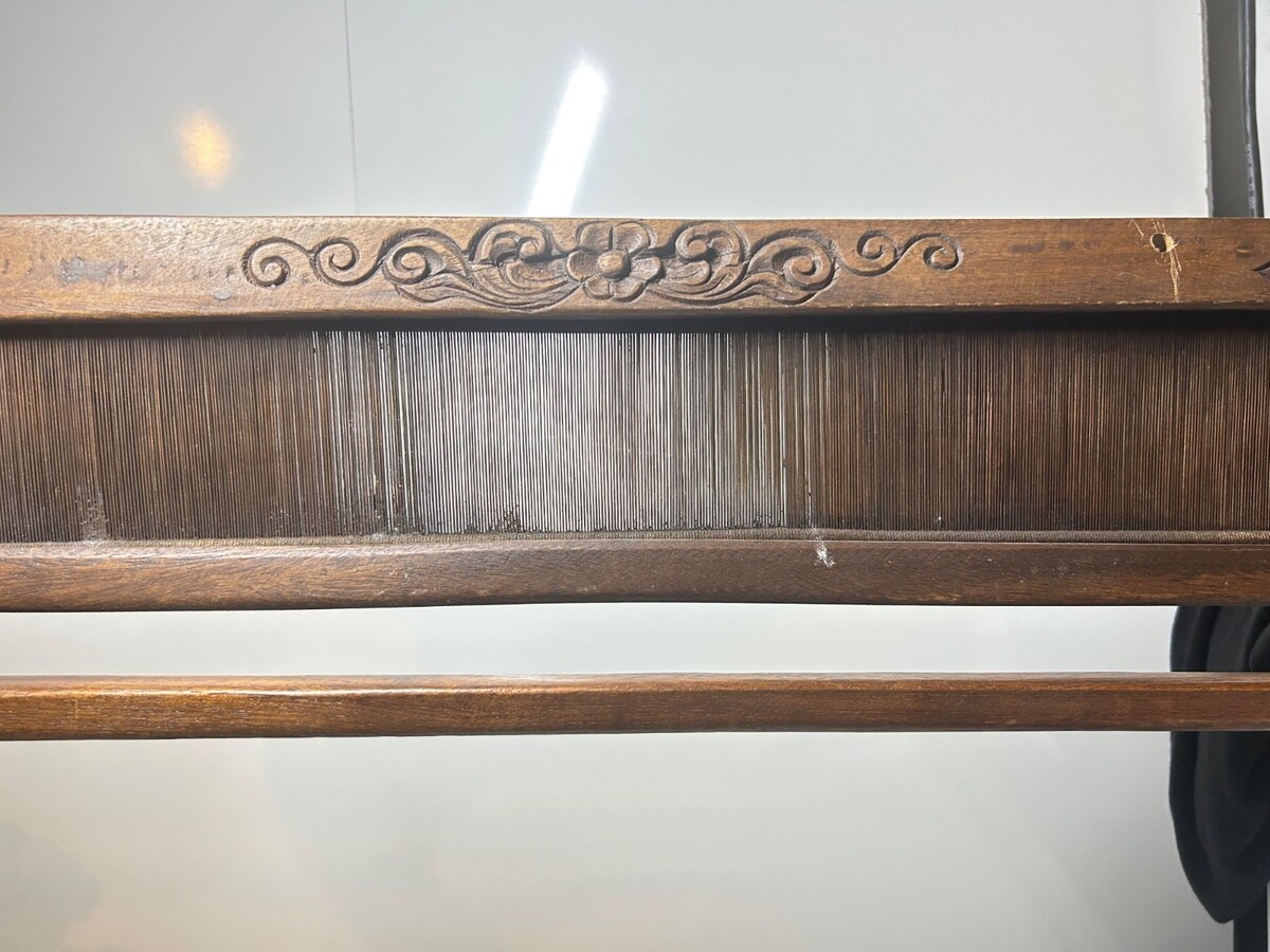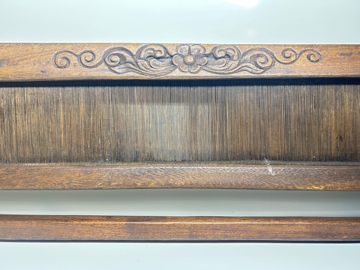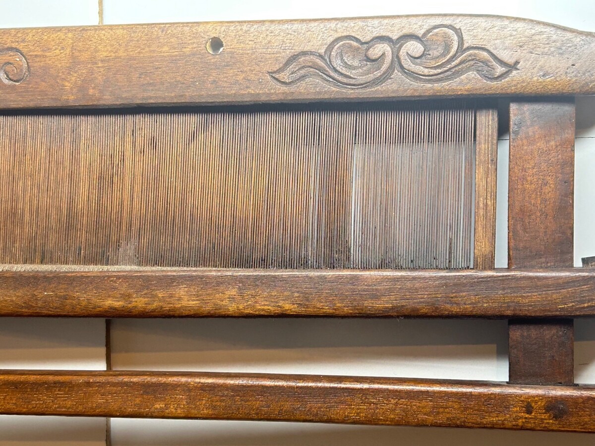 Wooden Handloom Reed Carved Floral Design Weaving Loom 36” Vintage Thailand Loom