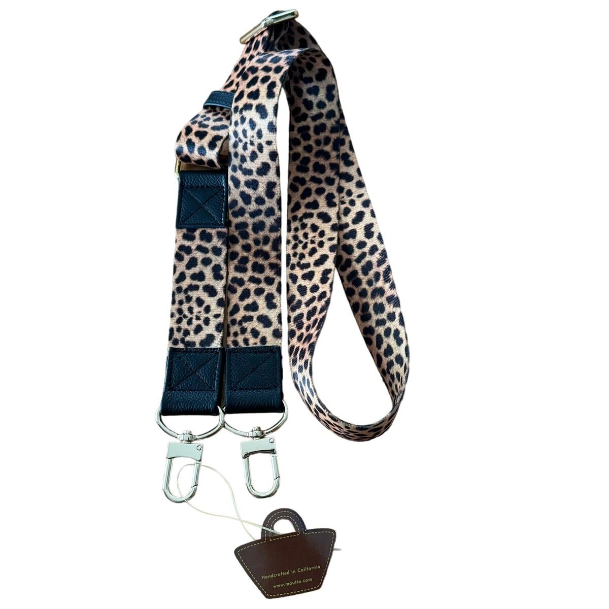 New Mautto Cheetah Leopard Print Handbag Strap 1.5" Wide 48" Long Gold Tone