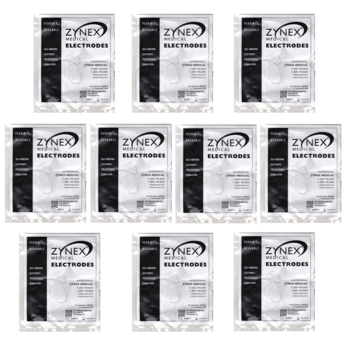 10 packs of 4 - Zynex Medical Tens Unit Electrodes 2" Round Pads (40 pads)