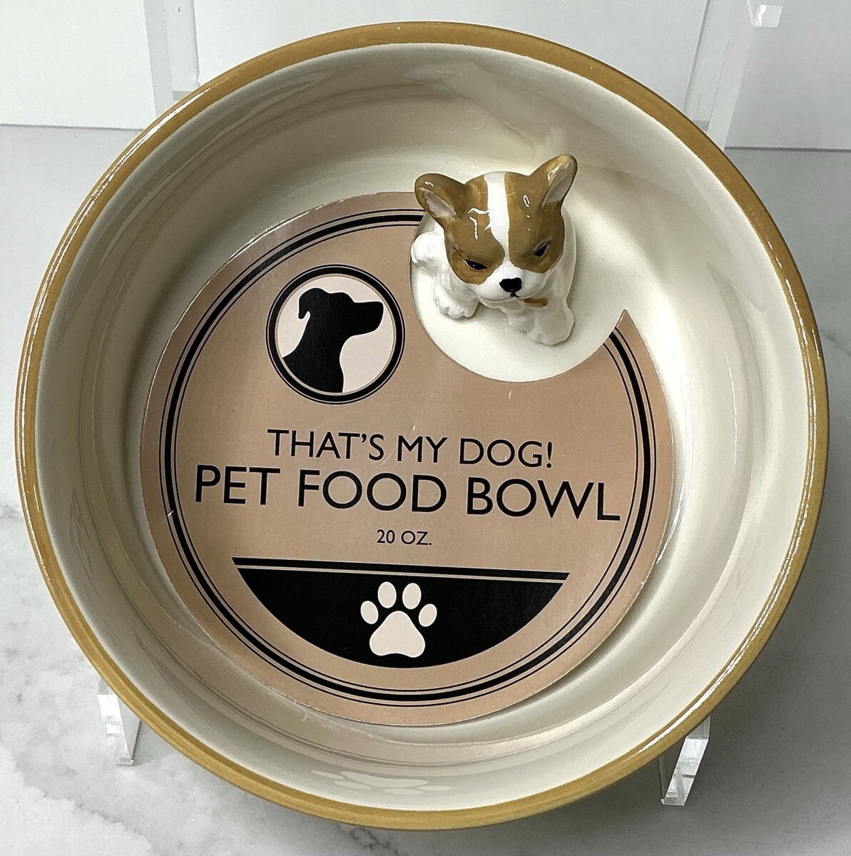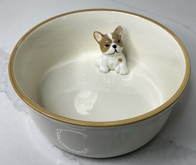 Rockybear Pet Bowl With Small Dog Inside Pet Ceramic Beige Bowl Dish New