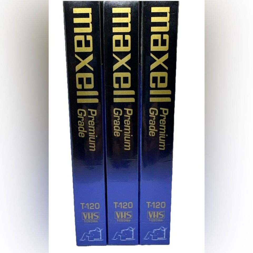 3 brand new sealed Maxwell Premium Grade VHS tapes. For superior sound and picture quality.