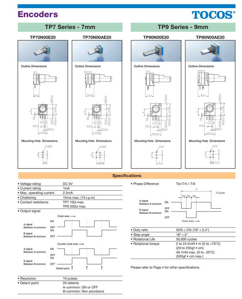 TP70N17E20 TOCOS 7mm Single Shaft High and similar items