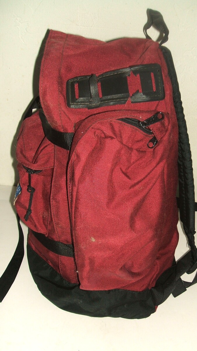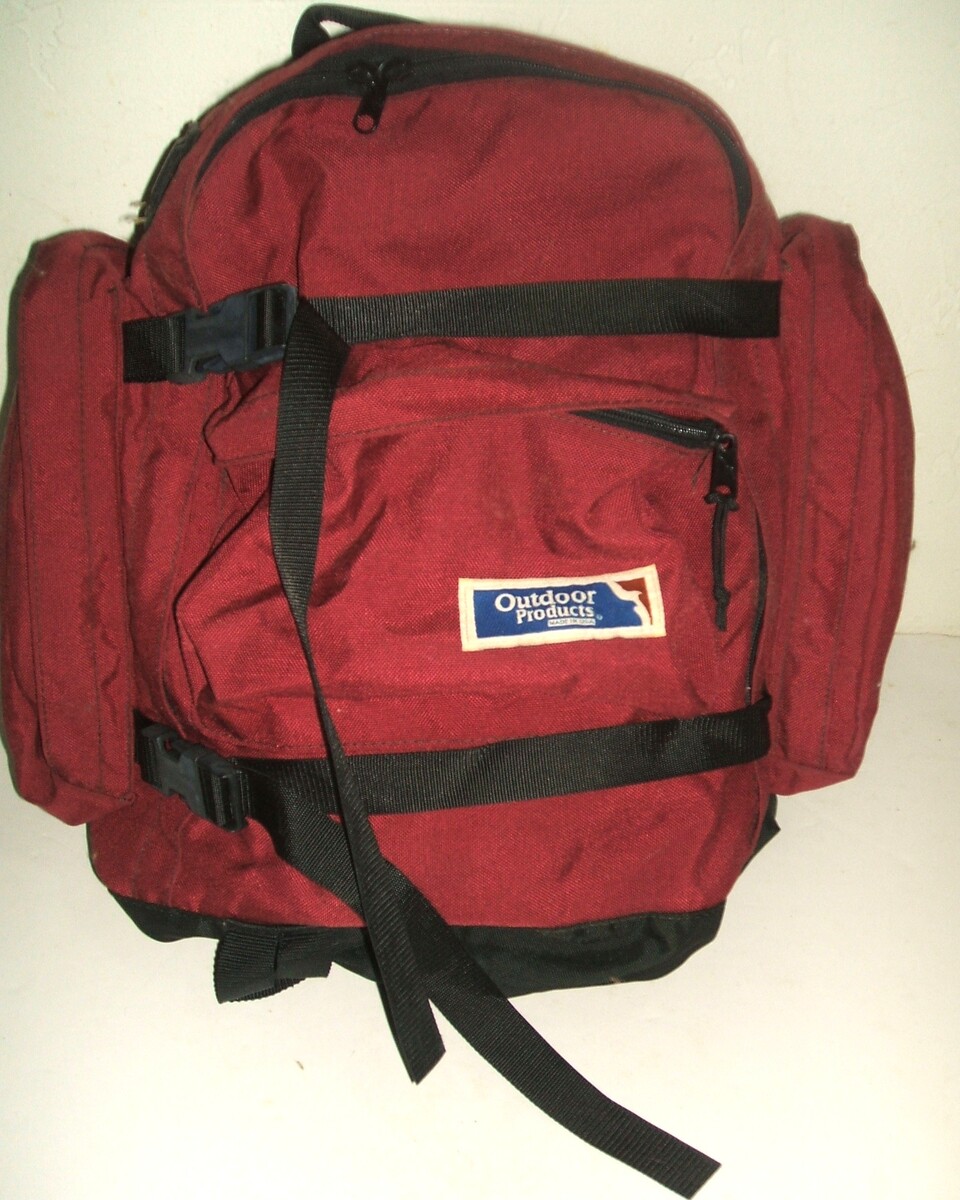 Outdoor Prod. MADE IN USA plum/maroon nylon daypack w two lg side pockets
