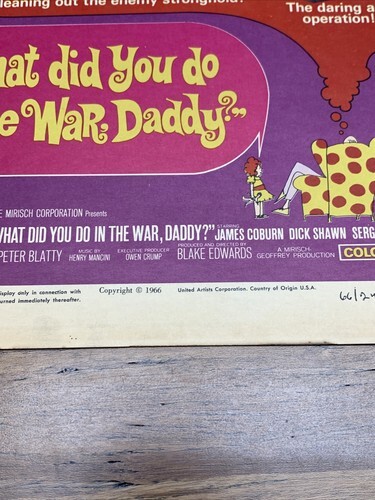 What Did You Do In The War Daddy 1966 Original Window Card Movie Poster CV JD