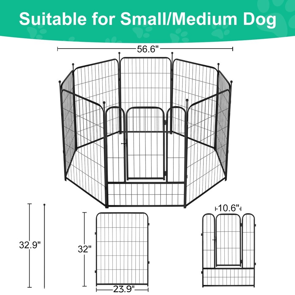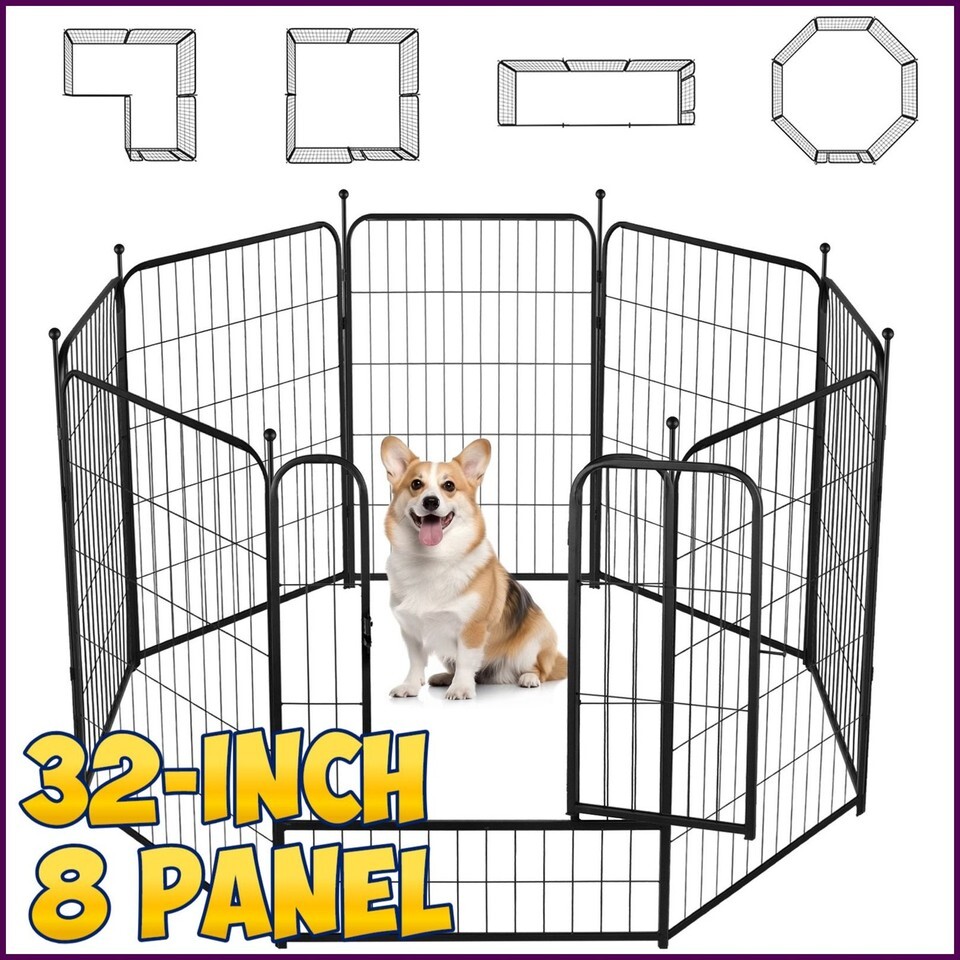 Heavy Duty Dog Playpen 32” 8-Panel Foldable Metal Pet Enclosure Indoor Outdoor