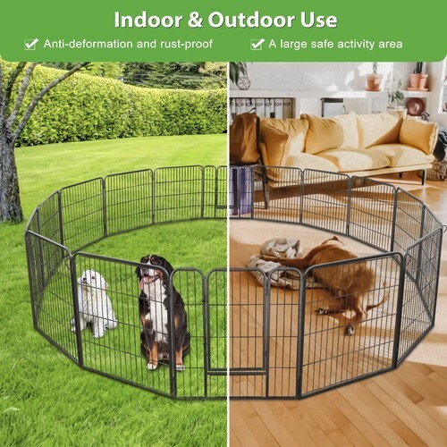 Give your dog a safe, spacious, and secure area to relax, play, or rest ? indoors or outdoors. This heavy-duty 32? metal dog playpen is designed for pet owners who want strength, flexibility, and peace of mind, without permanent fixtures or complicated setup.