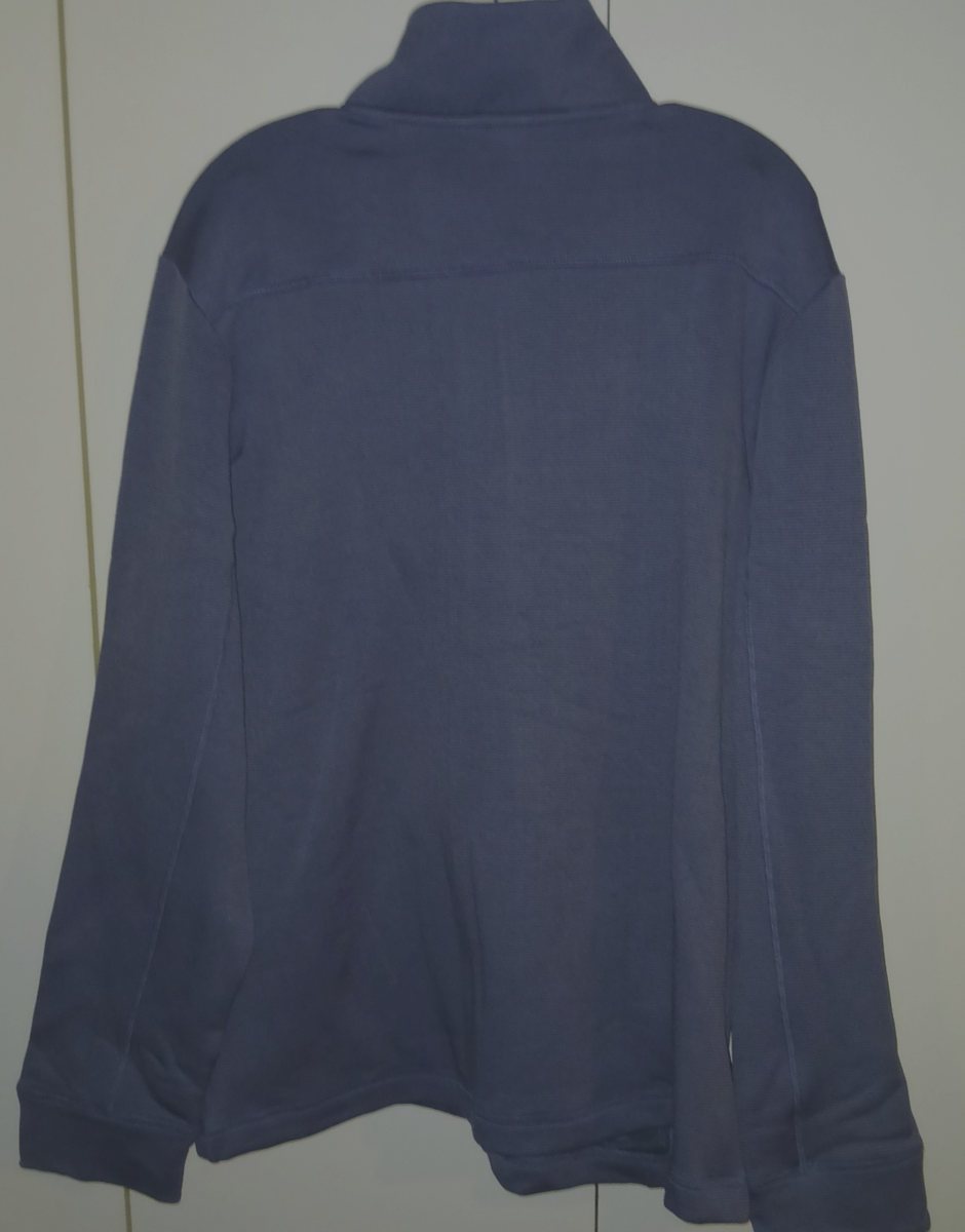 THIS IS A GREAT MEN'S KNOSS MICROSTRIPED GRAY FULL-ZIP FLEECE JACKET IN A SIZE LARGE. IT IS NEW, WITH TAGS ATTACHED.