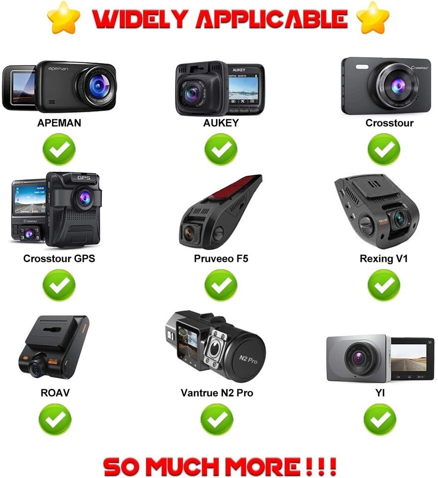 Designed to fit popular dash cameras like APEMAN, Falcon, Roav, and more.