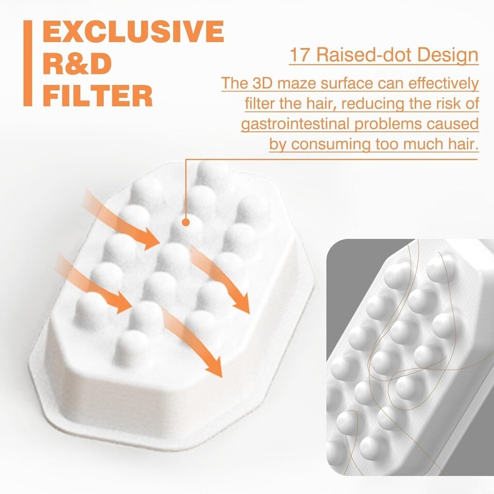 ?Quadruple Filtration System?The carbon filter features a triple filtration system that includes a cotton layer, activated carbon, and ion exchange resin, which helps to remove odor, soften water, and improve the taste and quality of your pet's drinking water. Meanwhile, the pre-filter sponge captures pet hair, dirt, and food particles, providing your pet with pure and healthy water.