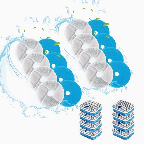 Filters for Tritone Fiumi Ceramic Pet Water Fountain, 8PCS Carbon Filters and 4PCS Foam Filters
