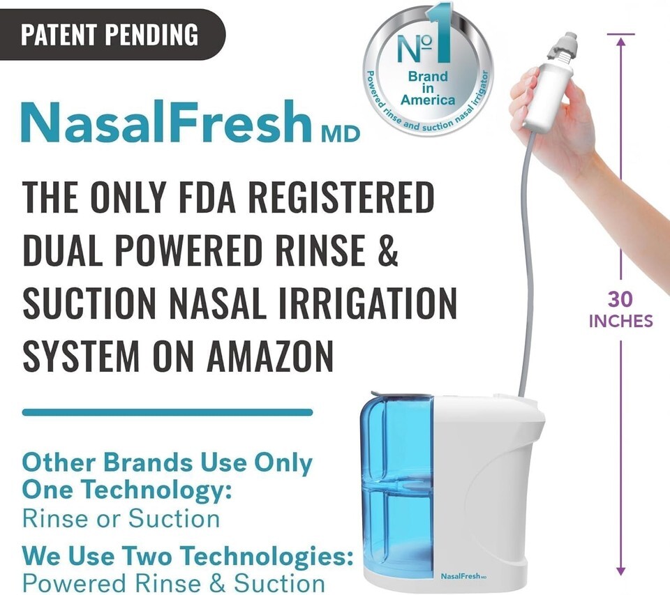 SINUS RELIEF AND CONGESTION CLEARANCE - IMPROVED SLEEP - Experience quick relief from nasal congestion with our advanced saline nasal cleaner. You'll breathe easier, sleep more soundly, and feel healthier with this pioneering nasal irrigation system that features BOTH Powered Sinus Rinse and Powered Suction. The nasal cleansing technology in is not available in any other nasal cleansing device available today and is so unique that it is the subject of a pending patent.