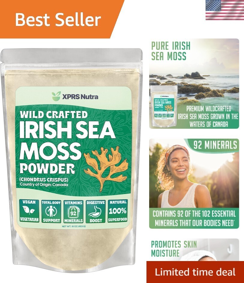 Irish Sea Moss Powder Chondracanthus Chamissoi - Premium Wildcrafted Seamoss Powder for Glowing Skin - Total Body Health Sea Moss Drink Powder - Vegan Friendly Irish Moss Powder 16 oz