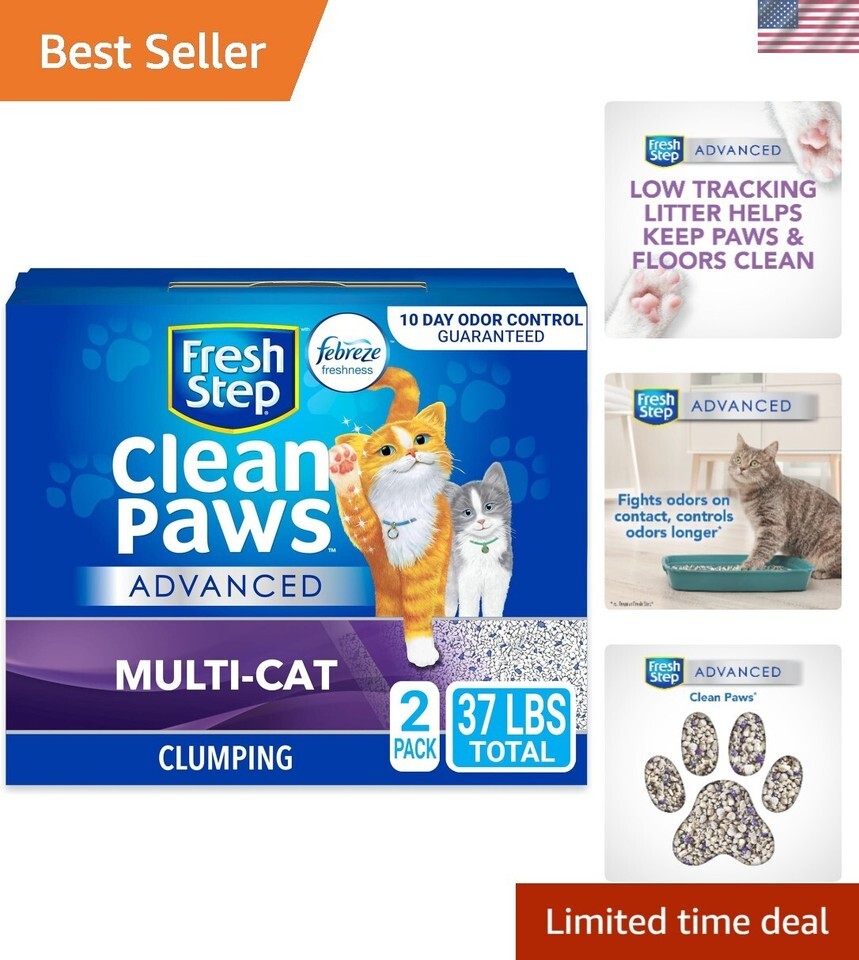 Clumping Cat Litter, Advanced, Clean Paws Multi-Cat, Extra Large, 37 Pounds total 2 Pack of Boxes
