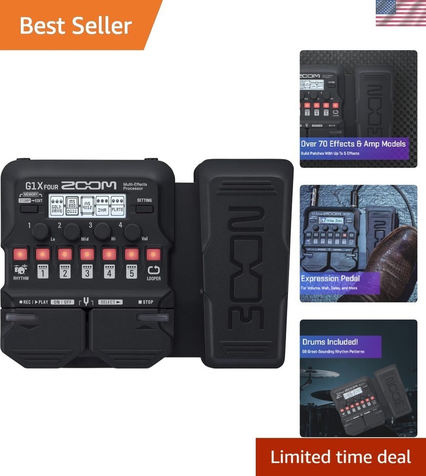 G1X FOUR Guitar Multi-Effects Processor with Expression Pedal, With 70+ Built-in Effects, Amp Modeling, Looper, Rhythm Section, Tuner, Battery Powered