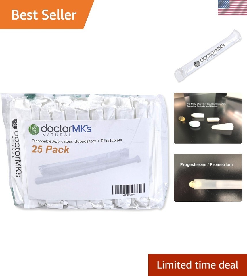 Suppository Applicators 25-Pack, Fits Most Suppositories, Pills and Tablets, Individually Wrapped, Disposable, by Doctor MK's