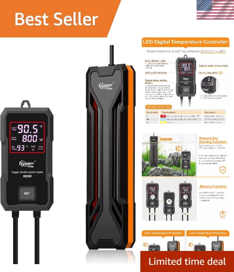 Aquarium Heater 300W/500W/800W/1000W, Submersible Fish Tank Heater with Digit...