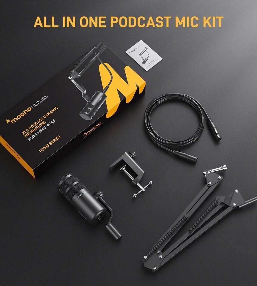 All In One Micro Set: XLR dynamic micro with arm stand * 1, ft XLR cable * 1,user manual * 1. Start your broadcast journey with a affordable micro set here