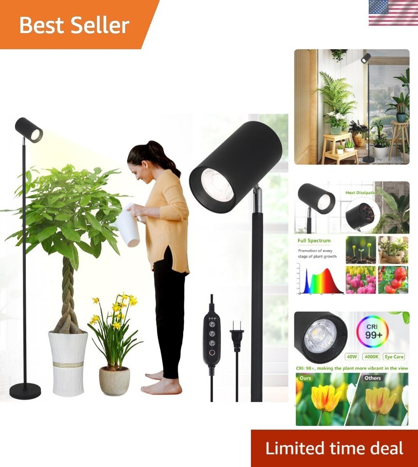 40W Grow Lights Stand for Indoor Plants Full Spectrum, Standing Plant Light f...