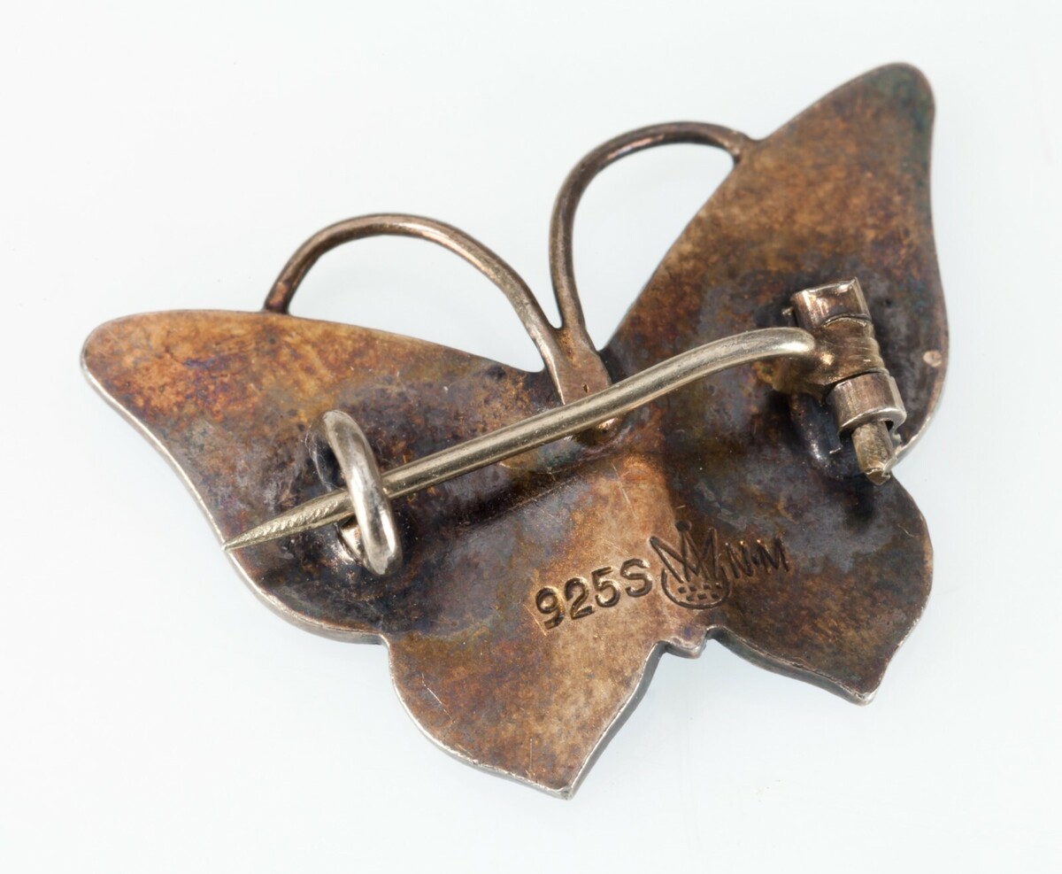 MAGNUS AASE Blue Enamel Butterfly Brooch Sterling Silver Made in Norway
