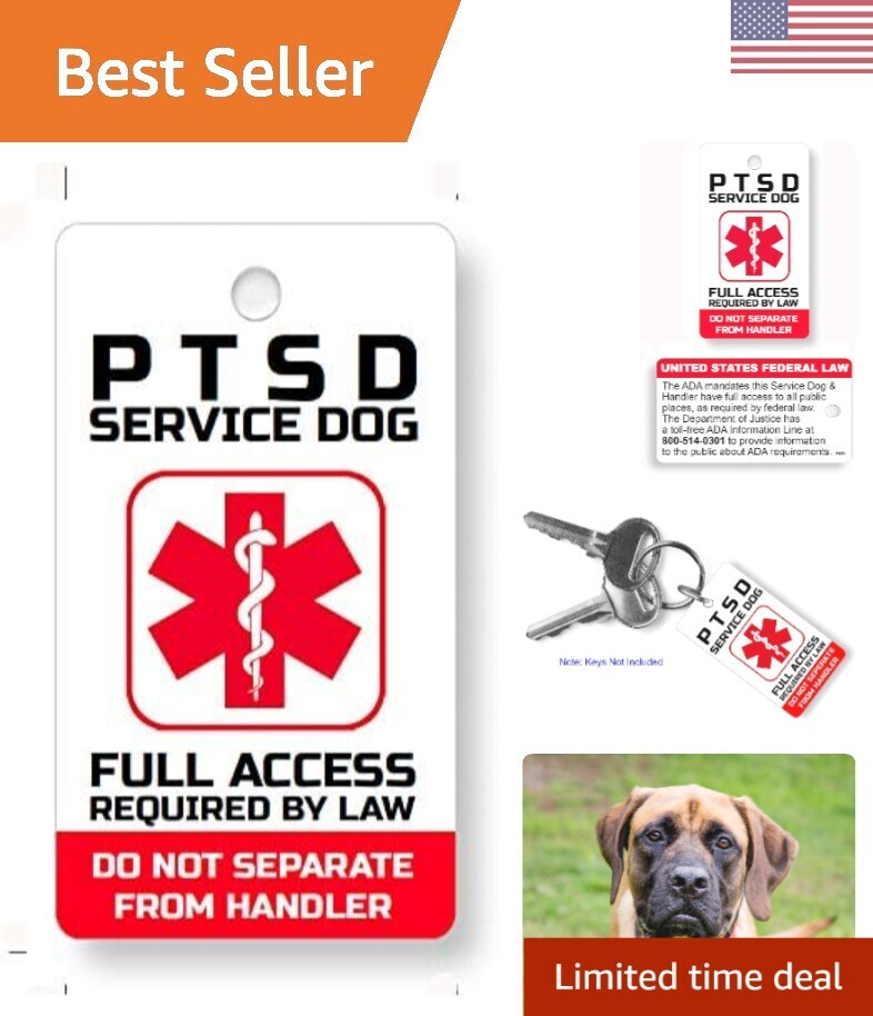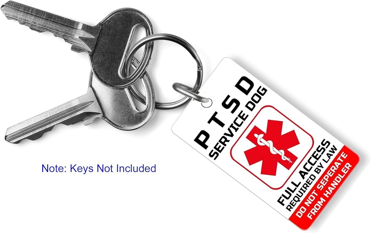 PTSD Service Dog key or collar tag comes with a 1-inch durable, high-quality metal alloy ring to attach to the collar.