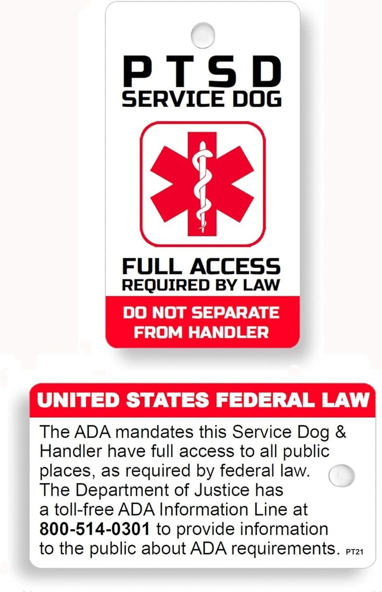 Perfect for anyone with a PTSD Service Dog. We're confident you'll be proud for your dog to wear these tags.
