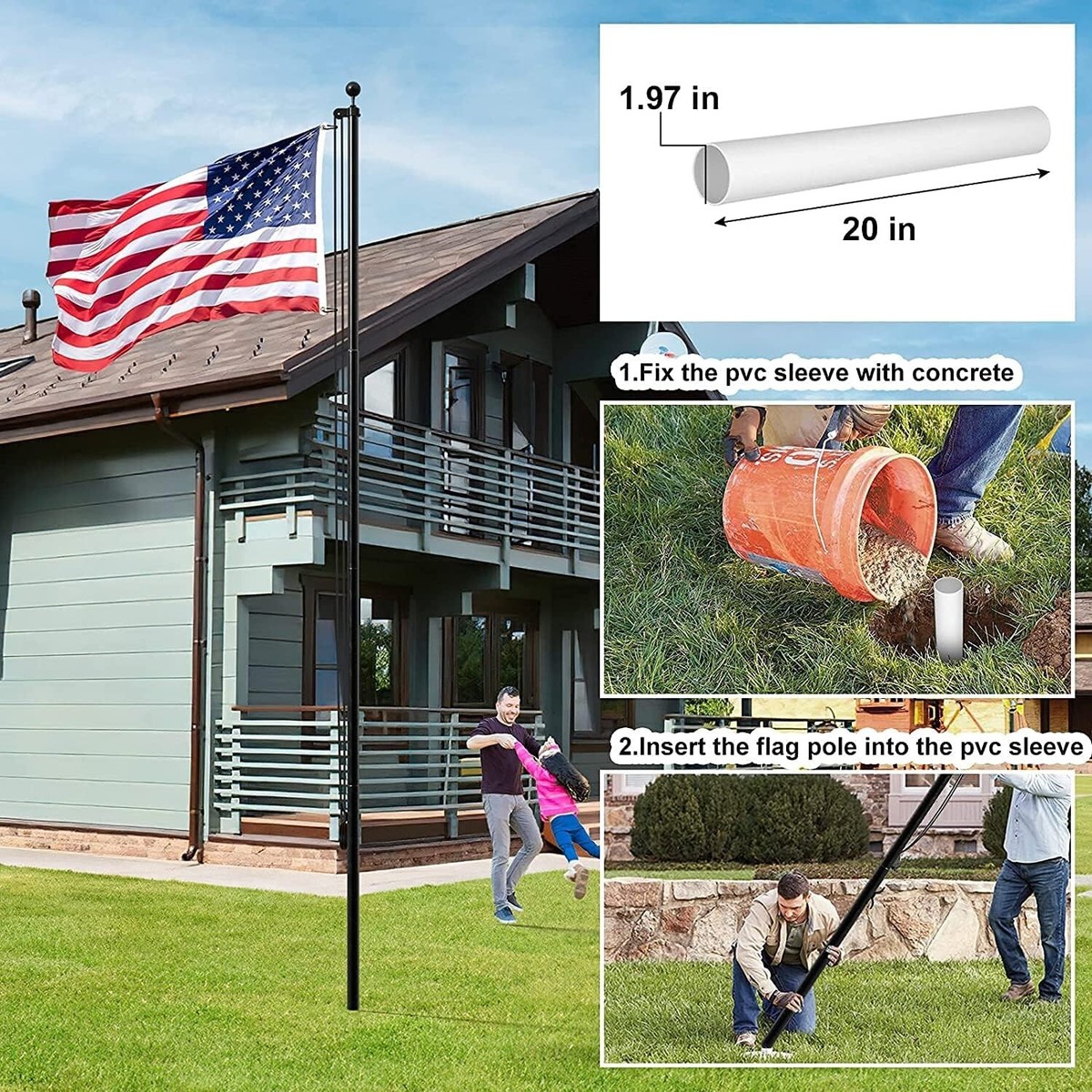 Stylish 25 FT Flagpole for Yard - Complete Set with Accessories, Black Finish