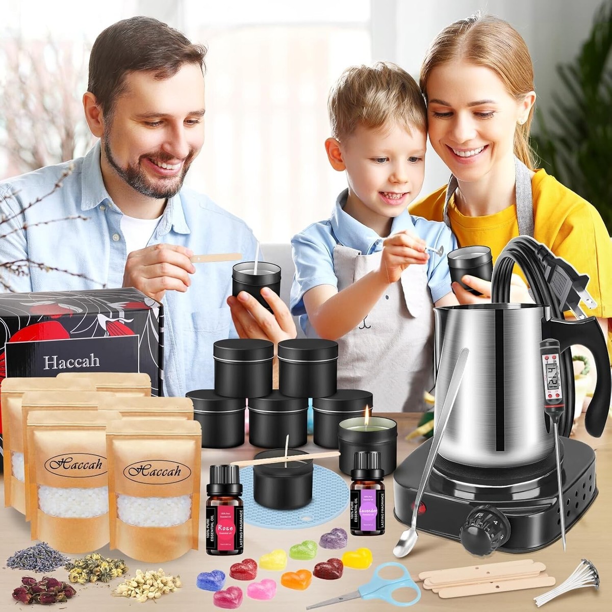 Complete Candle Making Kit With Wax Melter, Candle Making Supplies, Diy Arts Crafts Kits Gift For Adults,Beginners,Including Soy Wax,Electric Stove,Wicks,Rich Scents,Rubber Pads,Wick Clips,Spoon, Etc.