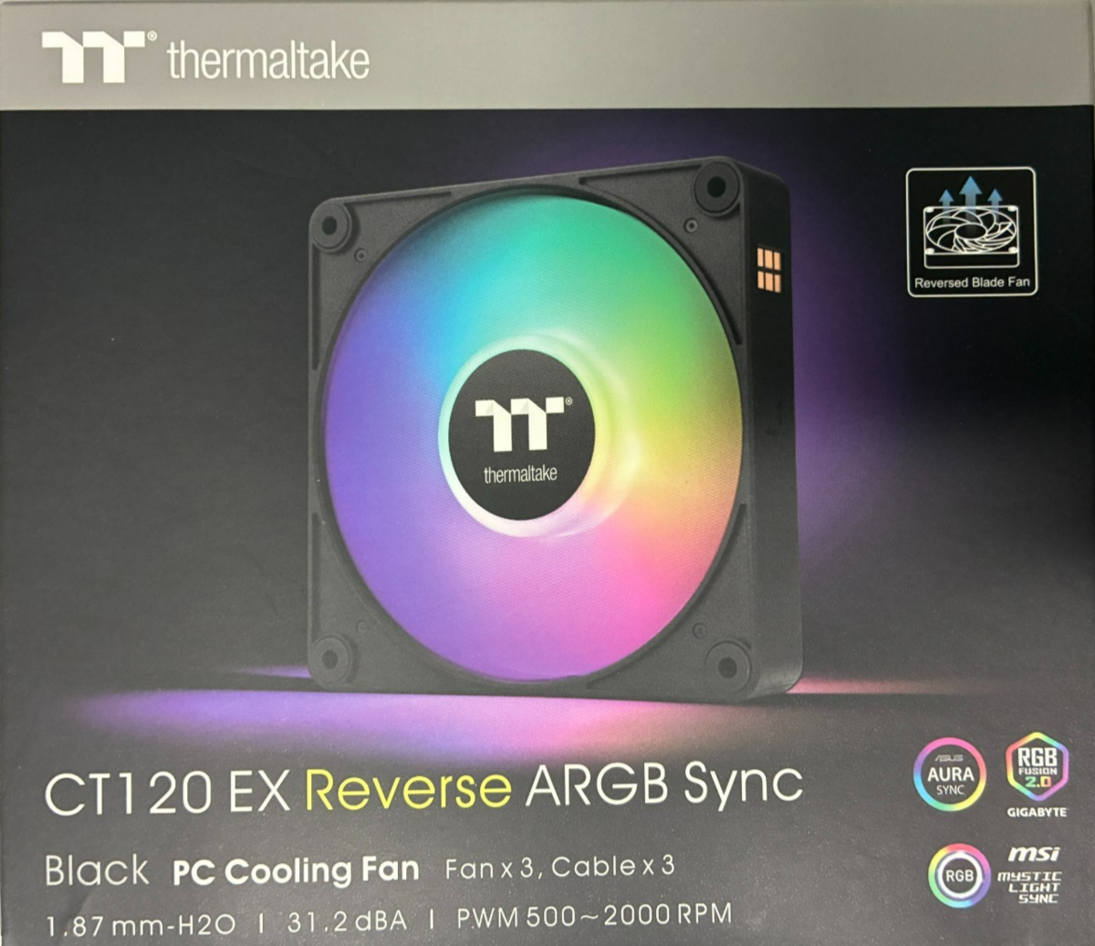 Thermaltake - CT120 - EX Reverse ARGB Sync PC Cooling Fan - Black - Pack of 3