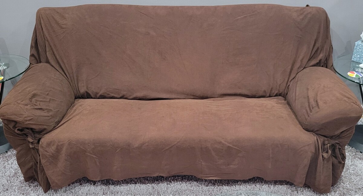 MA) Room Essentials 3-Seat Sofa Slipcover Chocolate Brown Soft Suede