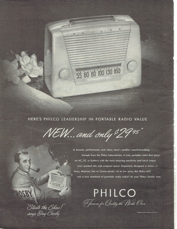 1948 Philco 602 Print Ad Radio Bing Crosby 8.5" x 11"
