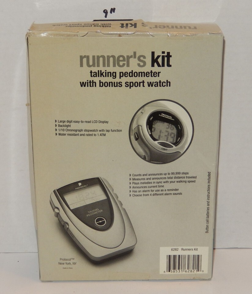 For Sale is a Protocol Runner's Kit Talking Pedometer with bonus sports Watch. it in good condition as seen in the pictures provided since this is old new stock might need new batteries what you see is what you will receive. Please ask Any and All Questions prior to purchasing. Fast Same or Next day shipping with Free Delivery Confirmation within the U.S. Payment Due within 7 days of purchase (if you need more time please let us know In advance) we love to combine shipping is always a Yes and Most of the time Additional Items Ship for free.