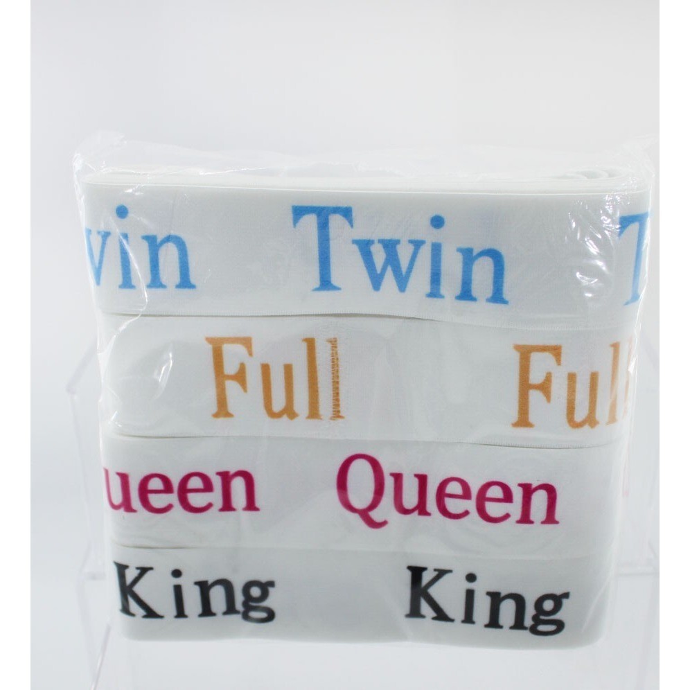 Organize your linen closet with this convenient set of bed sheet bands. Clearly identify your Twin Full Queen and King size sheets with these easy-to-use labels. Perfect for keeping your bedding sorted and easily accessible for quick bed making or storage.
