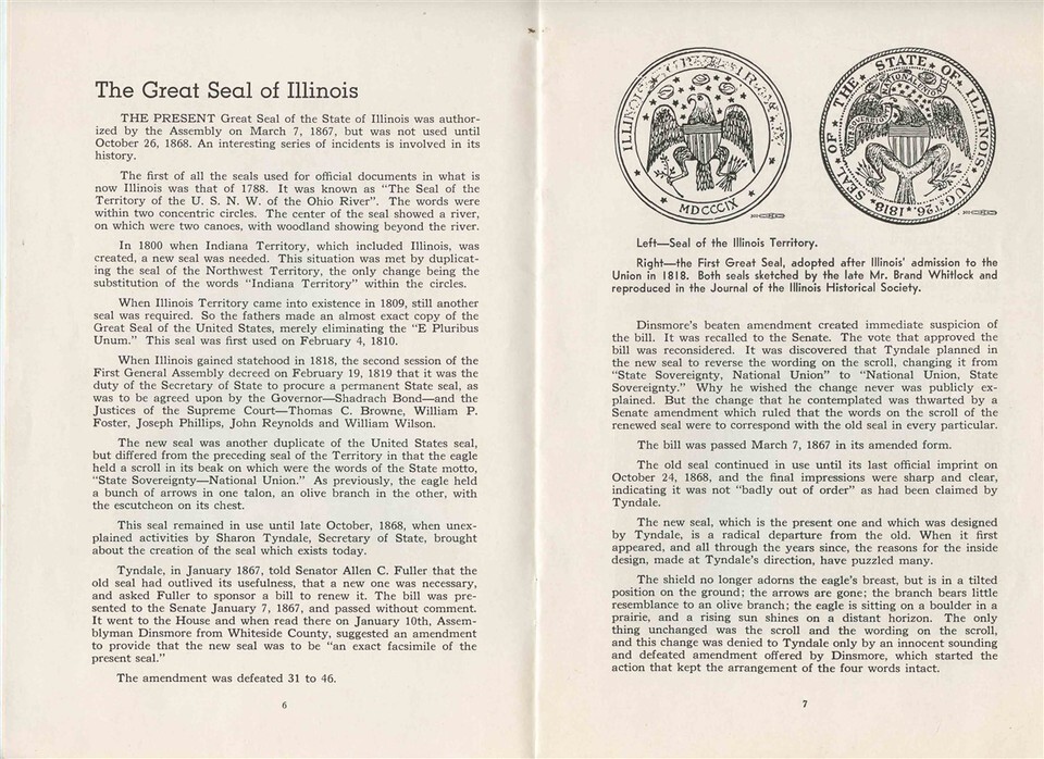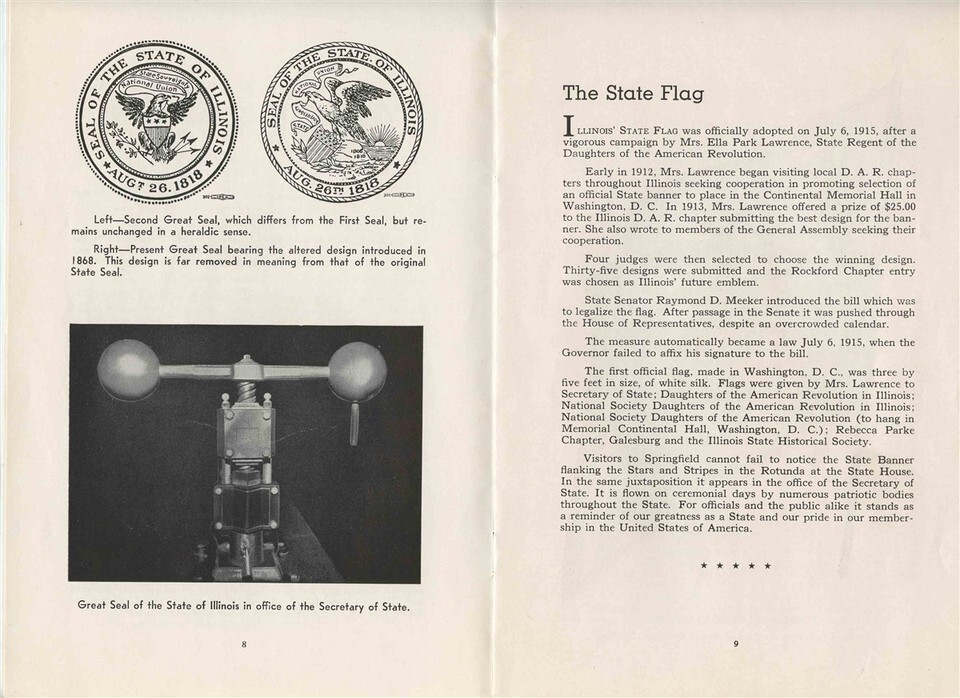 The Great Seal of Illinois & Other Official State Symbols Booklet 1950's