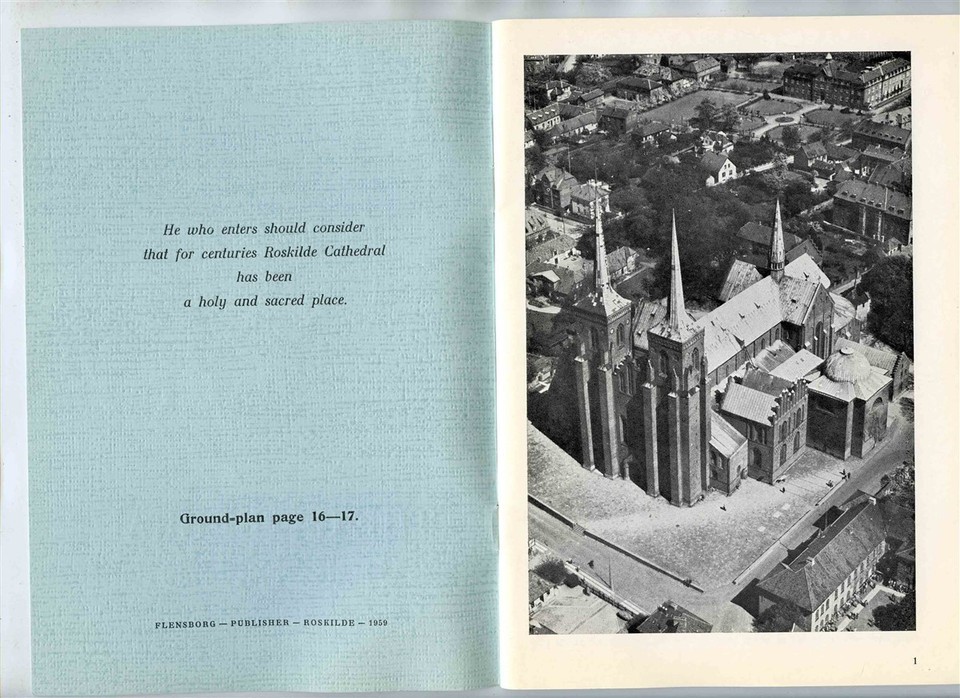 a 32 page well illustrated booklet, published in 1959. The Cathedral of Roskilde Booklet. Illustrated with History, Ground Plan and more.