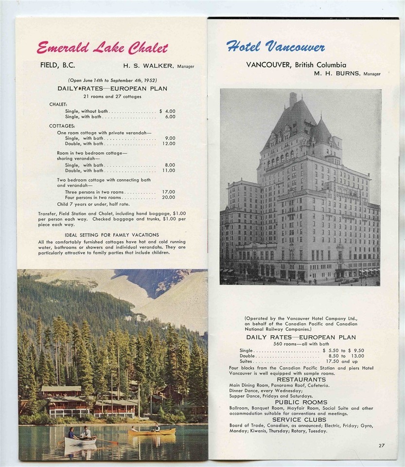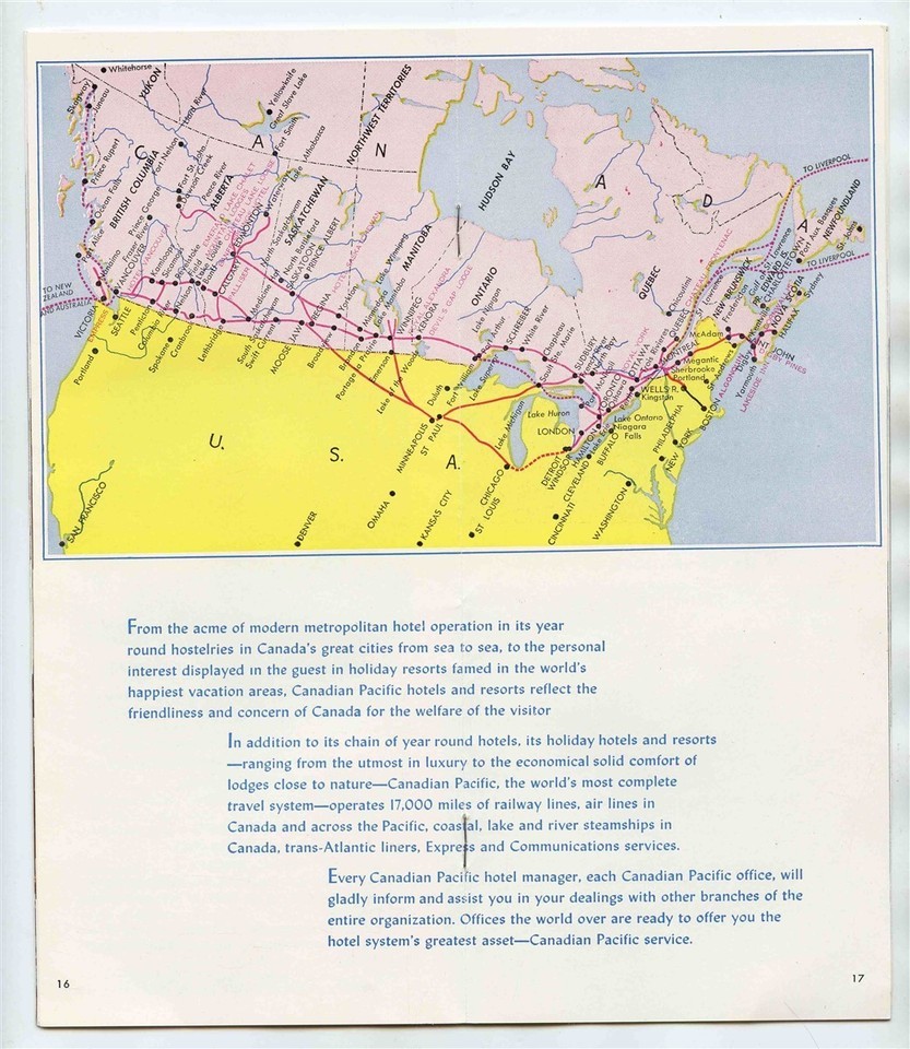 Canadian Pacific Hotels From Sea to Sea Booklet 1952 Railroad Route Map