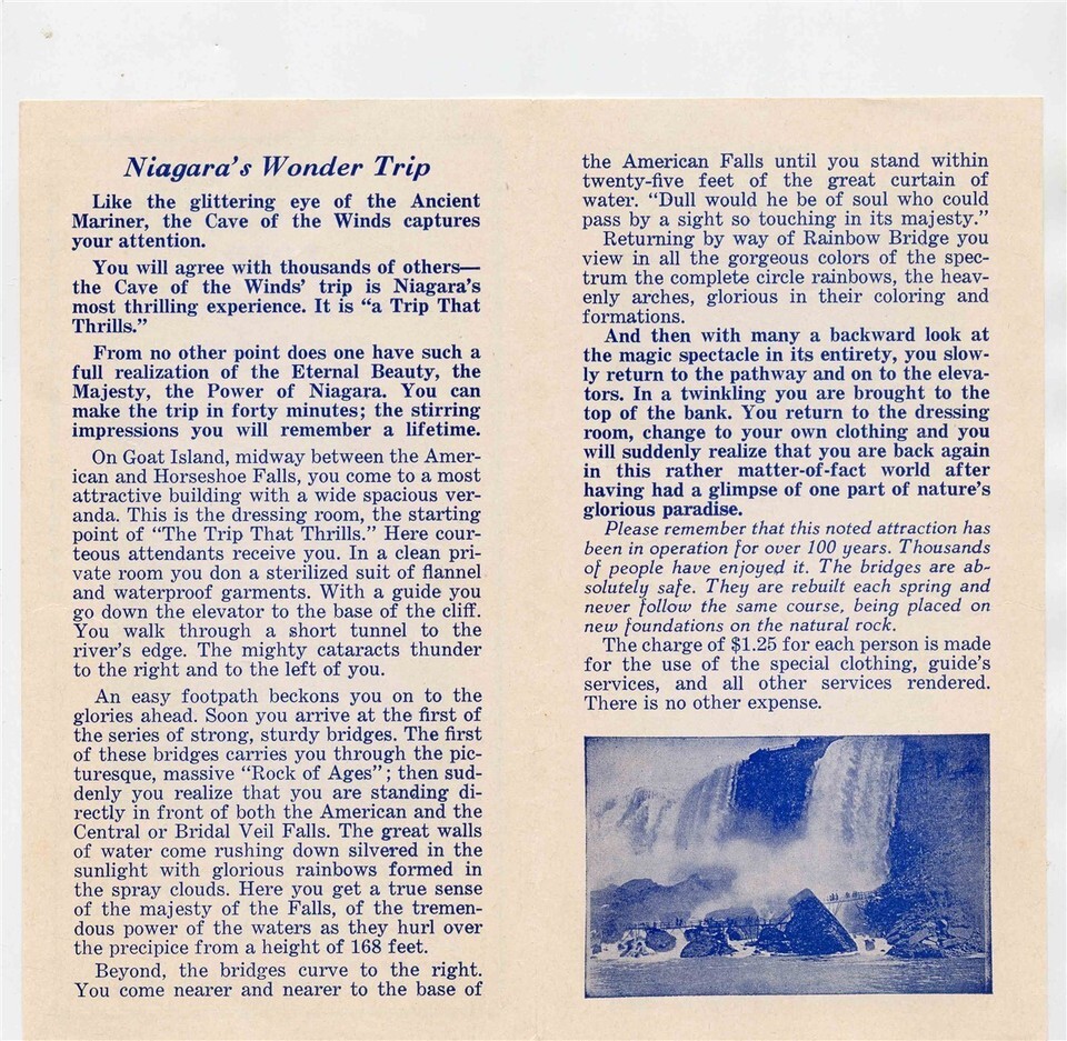 Cave of the Winds Trip Goat Island Brochure Niagara Falls Driving Directions