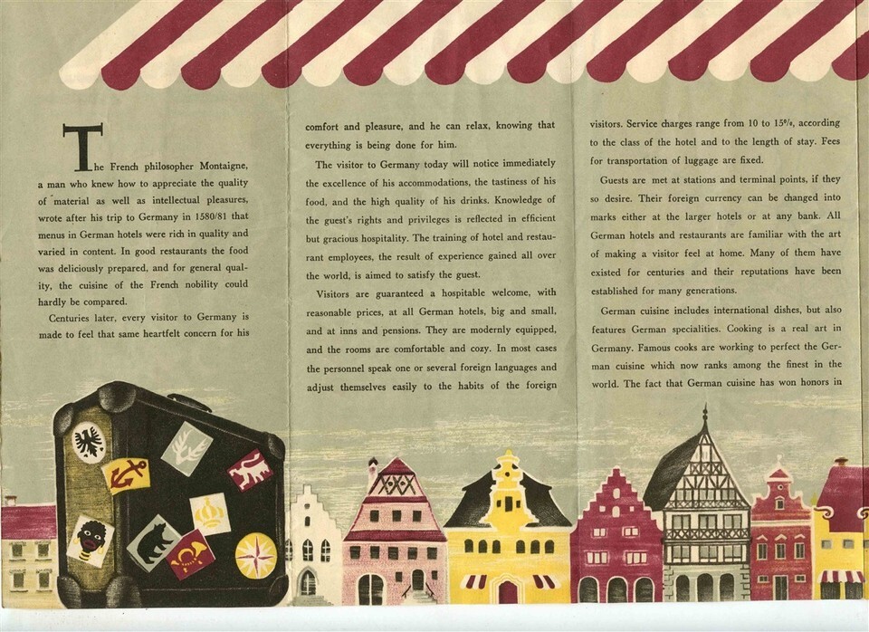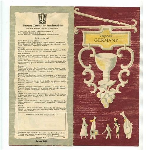 An attractive 10 panel fold out brochure in English. Has detailed visitor information, Map of Germany and more. Dated 1952