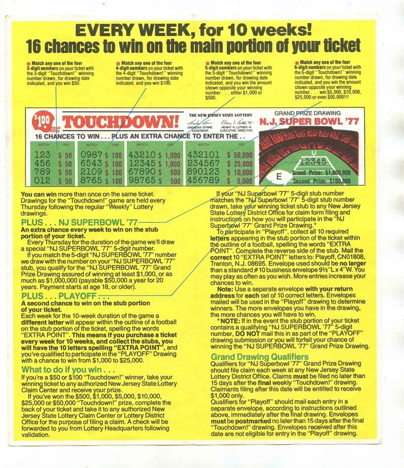 New Jersey State Lottery presents Touchdown and 50 similar items