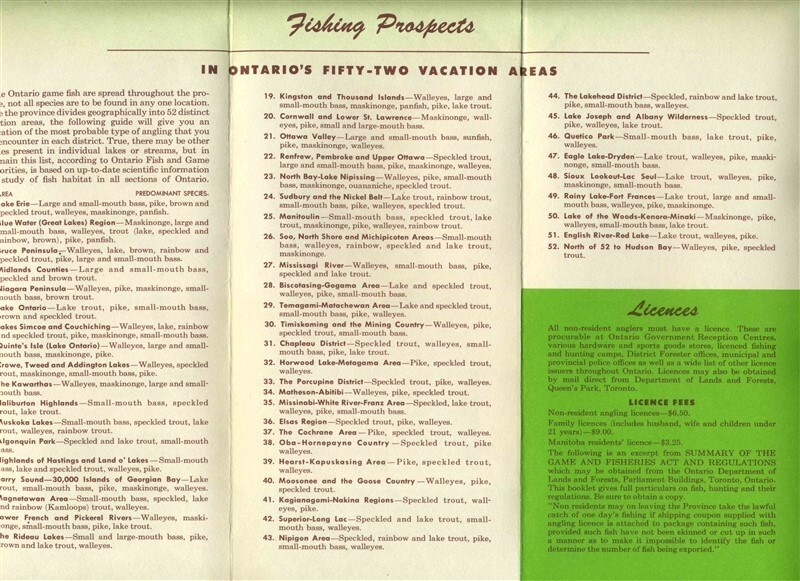 Ontario Outdoors Brochure 1952 Canada Vacationlands Fishing Angling