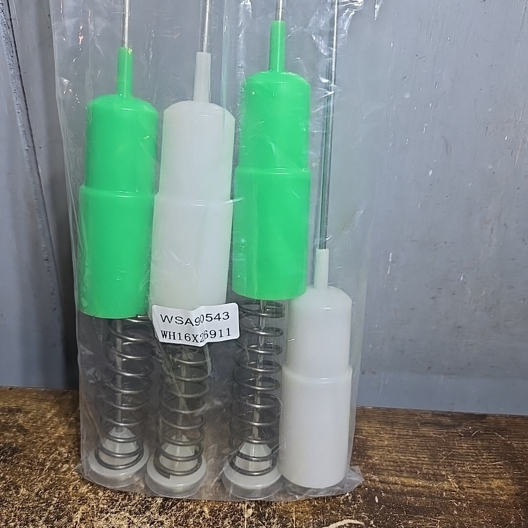 The WH16X26911 WH16X26910 Washer Suspension Rods are specifically designed for GE washing machines, providing a convenient solution for replacement or maintenance. This set includes 4 green suspension rods, suitable for agitator washing machines. The rods are electric-powered and have a matte finish, with dimensions of 24 x 4 x 2 inches and an item weight of 1.9 pounds. Perfect for ensuring smooth and efficient operation of your GE washer, these rods are a reliable choice to keep your appliance running smoothly.