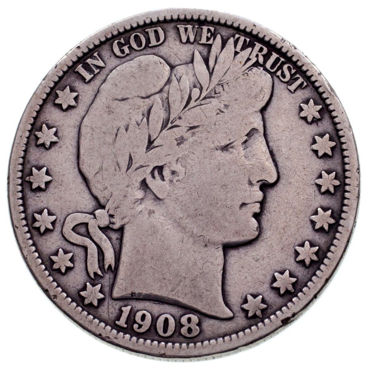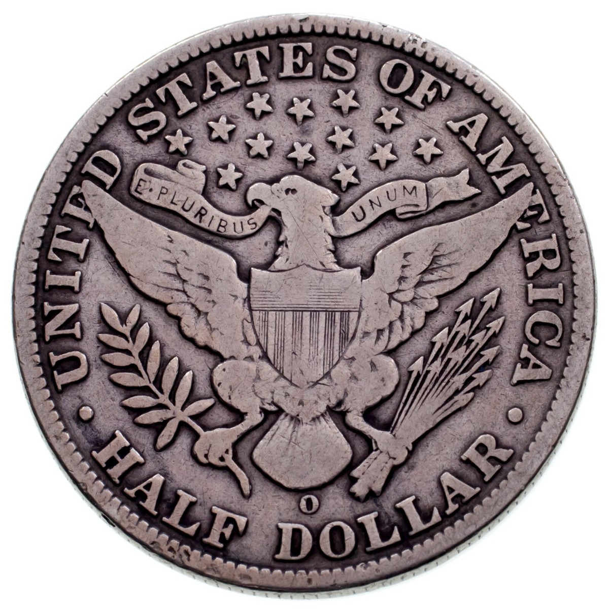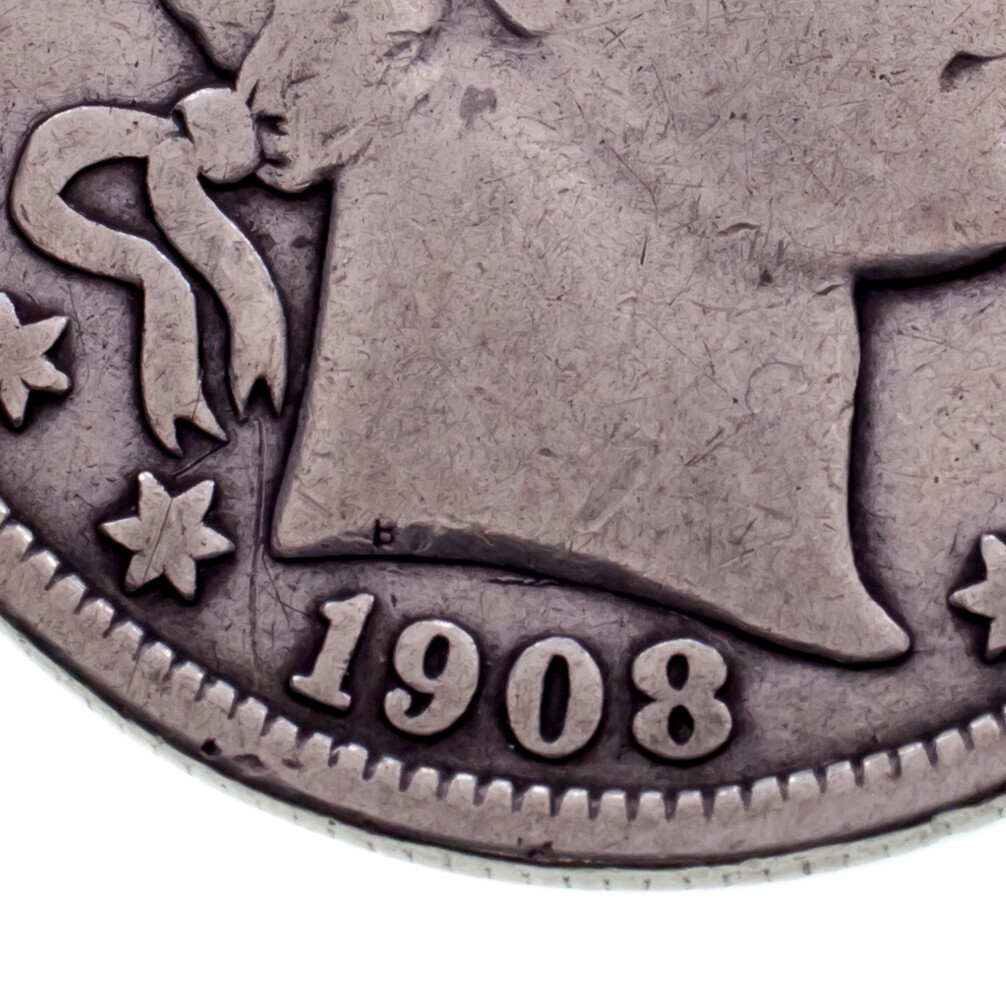 1908-O Barber 50C Half Dollar in Fine Condition, Light Gray Color