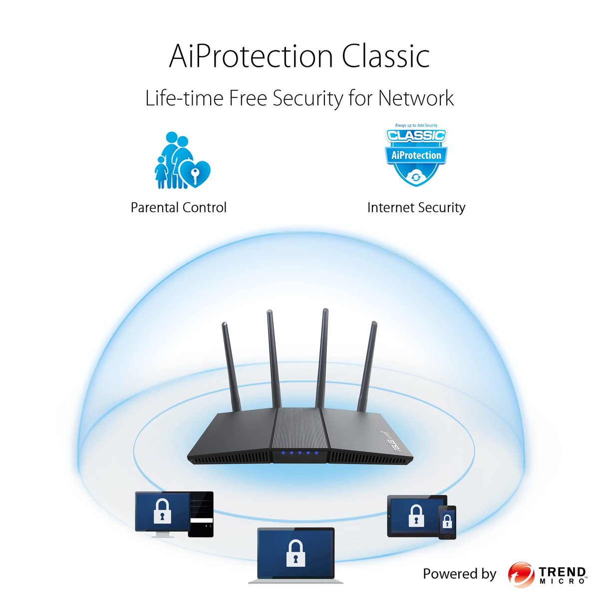 ASUS RT-AX1800S Dual Band WiFi 6 Extendable Router, Subscription-Free Network Se