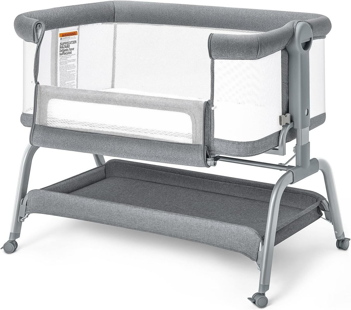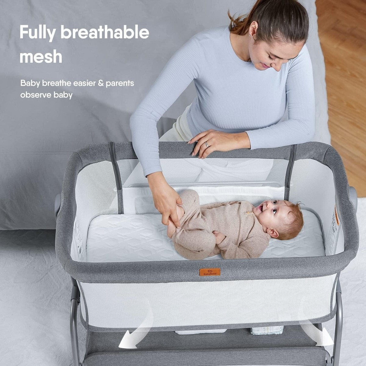 360 full Mesh Bed Surround: The crib is fully mesh to allow for better air circulation and prevent the risk of suffocation, and the see-through structure makes it easier for parents to observe babies