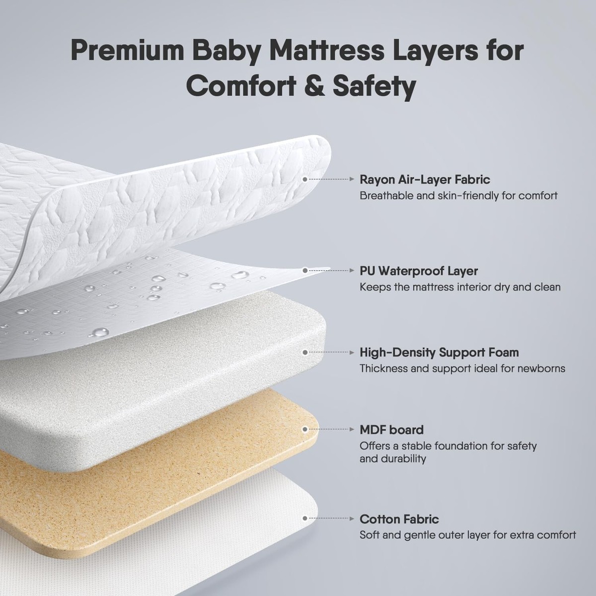 New Technology Sleep Mattress: The bedside bassinet mattress soft, skin-friendly, super breathable, the whole mattress can be machine washable, such as baby pillow feel, food-grade materials, the internal honeycomb breathable structure, opening rate of 98%