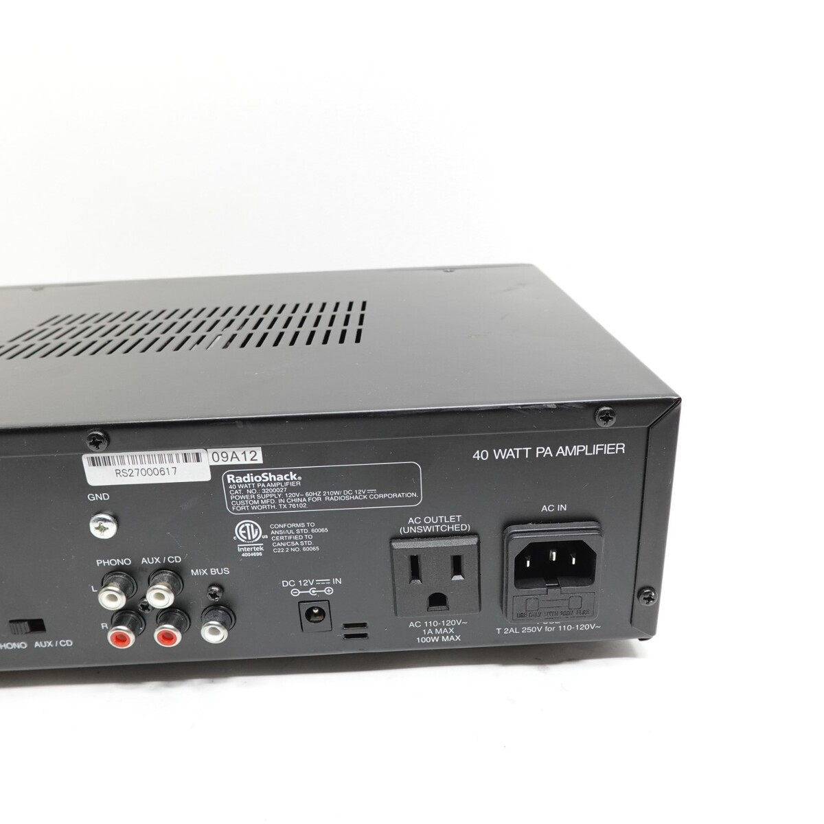 PA Amplifier Radio Shack 40-Watt Cat. No. 3200027 W/Power Cord