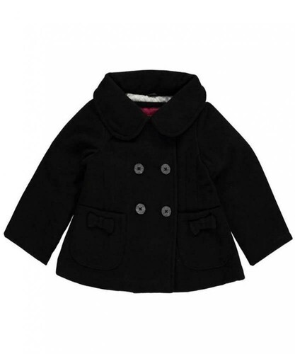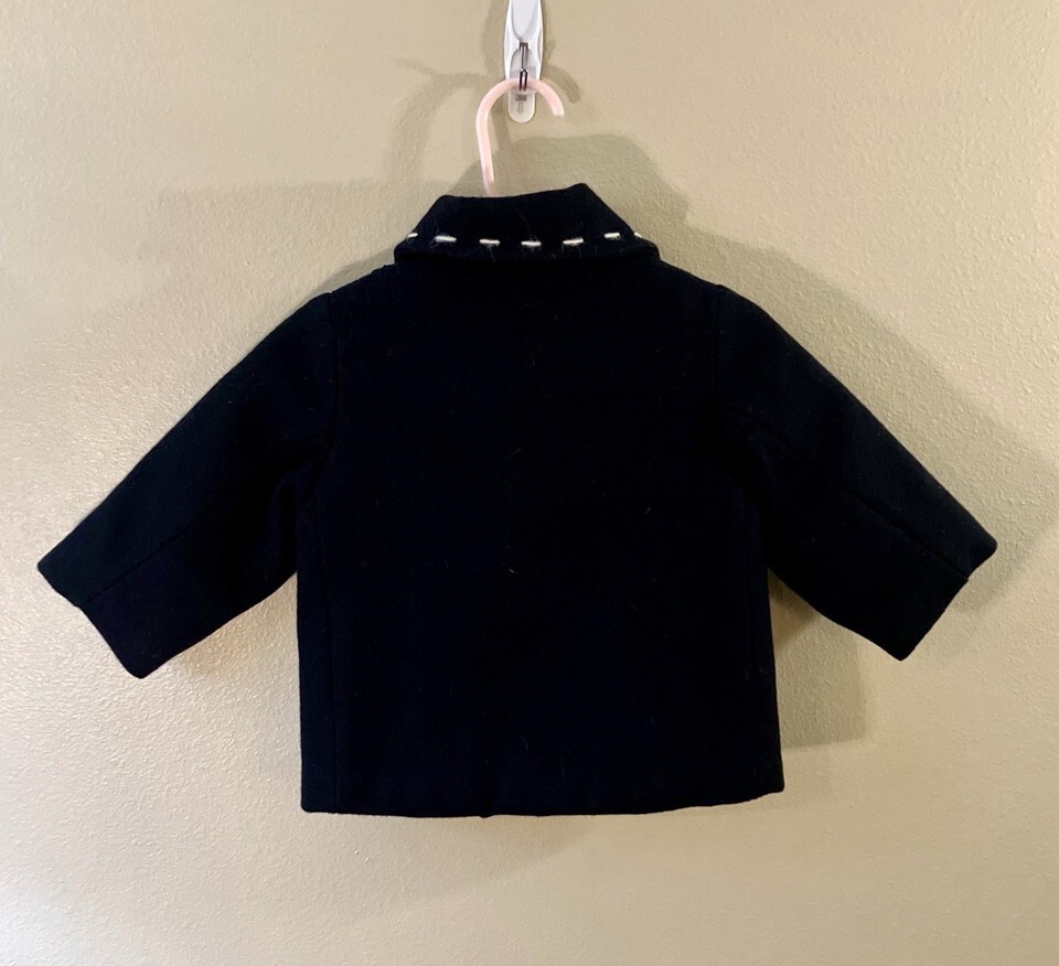Baratin Paris Wool Coat, Quilted Lining, Shell buttons, Black - Size 12 mo (EUC)