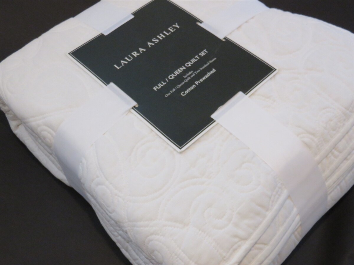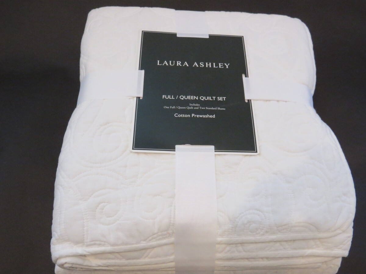 Laura Ashley Felicity Scroll 3p full queen quilt Shams set White NEW