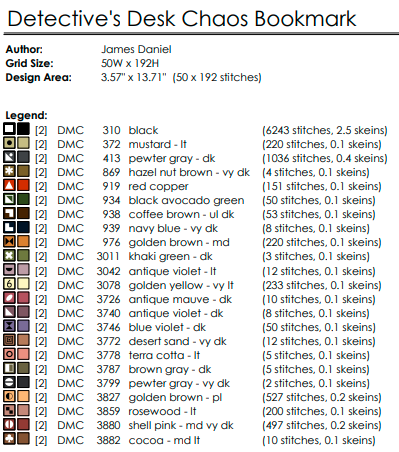 Detective's Desk Chaos Bookmark Cross Stitch Pattern (PDF) | Detective Noire