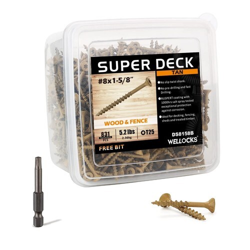 The product is 1-5/8" x #8, Deck Plus Green Ceramic Exterior Screws