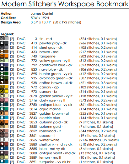 Contemporary Craft Studio Cross Stitch Bookmark Pattern